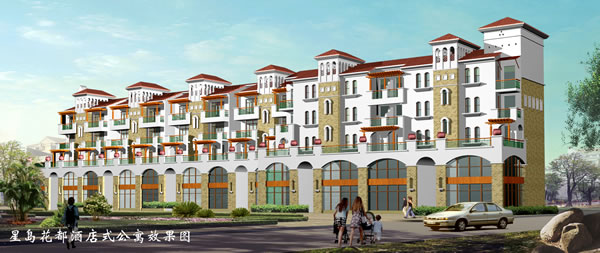 星島花都酒店式公寓位于我市世業(yè)洲島的中心位置?偨ㄖ娣e約為41300平方米。是一個集旅游、住宿、休閑為一體的綜合性項目。建筑外觀以西班牙風(fēng)格為主,立面生動活潑,也與世業(yè)洲的總體規(guī)劃相得益彰。